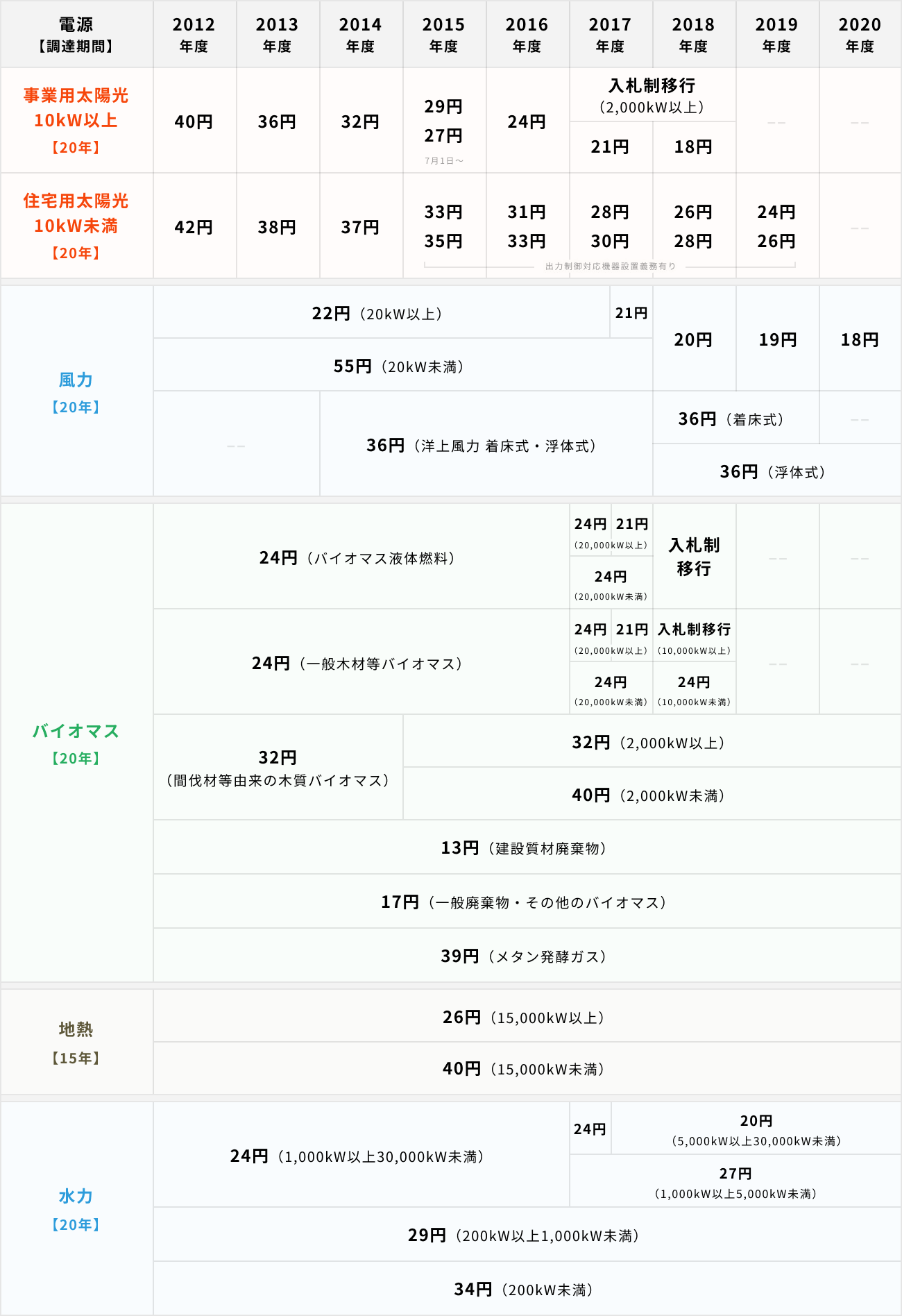 特に、同制度の開始当初は間伐材を燃料としたバイオマス電源の調達価格は規模に拘わらず一律32円/kWh(税別)であったところから、2015年度から「2,000kW未満の出力」が区分化され、実質的に従来の32円/kWh(税別) から40円/kWh(税別) に引き上げられた経緯もあり、同区分の普及に向けた期待値を伺うこともできます。