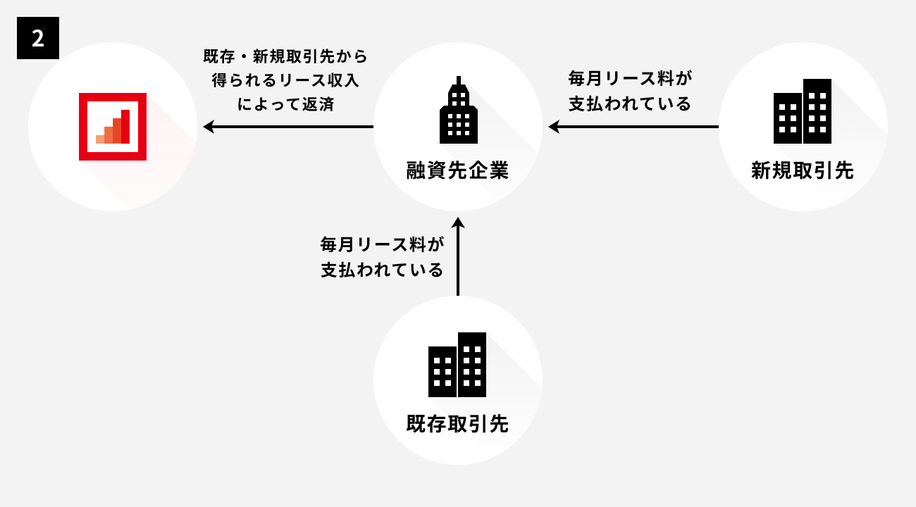 取引先に設備を設置してから安定的なリース収入を得られますが、設備設置から利益回収までに一定期間を要することからファイナンスのニーズを有しております。そのため、事業拡大すると一時的に資金繰りが悪化しますが、融資金を機器設置時の原価負担等に充てることによって取引先を拡大することができます。一度機器が設置されれば、その後は毎月安定的にリース料が取引先から支払われますので、当該収益を利払い・返済に充て段階的に当該融資の弁済を行うものとなります。