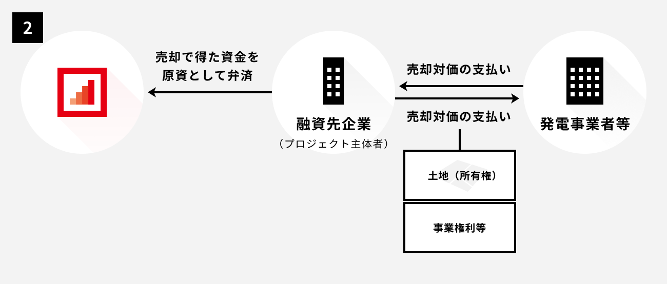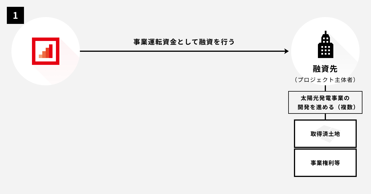 融資先は、運転資金として資金を調達し、複数の太陽光発電事業の開発を進めていきます。複数の発電事業の内、大分県の太陽光発電所の林地開発許可取得後に売却先を確定させ、当該売却代金を原資として、本営業者からの融資の弁済を行う予定です。