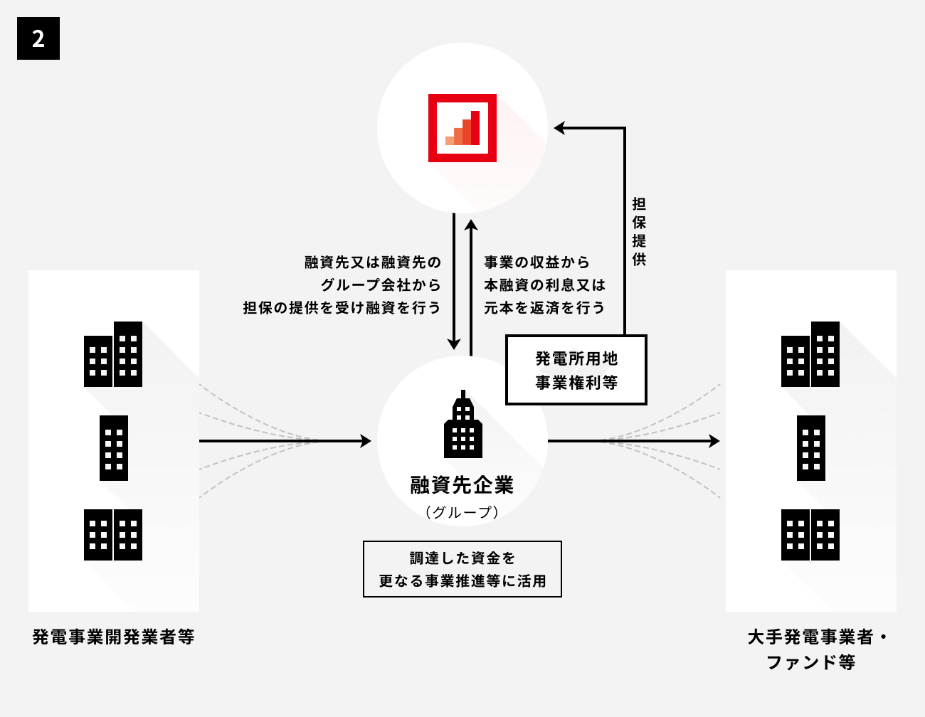 今回、融資先グループが保有している太陽光発電事業の一つを担保として調達する資金を用い、上記の取り組みを進め、事業収益等を原資として融資の弁済を行う予定です。