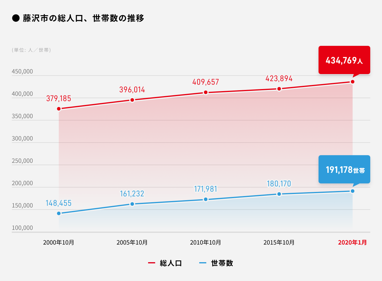 藤沢市の人口と世帯数(藤沢市ホームページ)