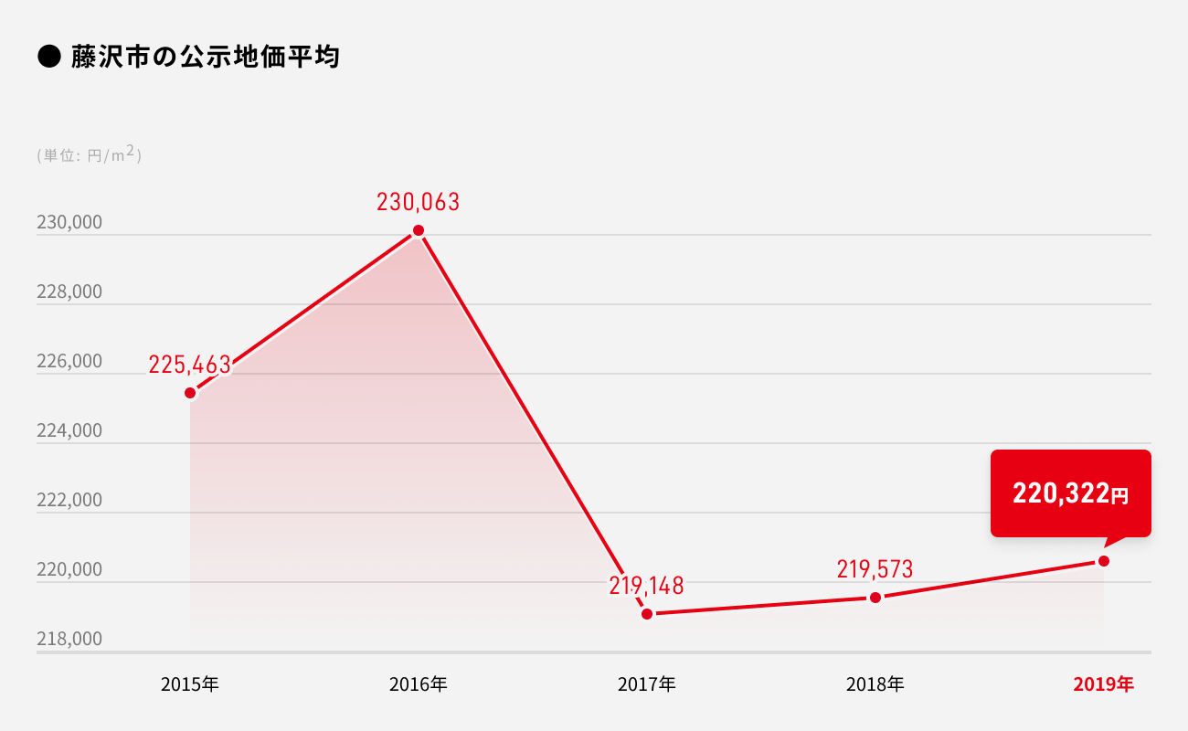 公示地価平均においても藤沢市は直近3年間は緩やかに上昇傾向にあります。