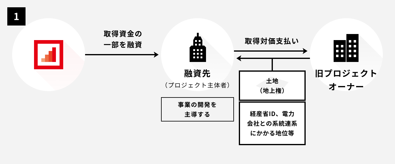 融資先は、調達した資金で太陽光発電事業の開発を進めます。開発が進捗した段階で当該発電事業を売却し、得られる資金を原資として、本営業者からの融資の弁済を行う予定です。